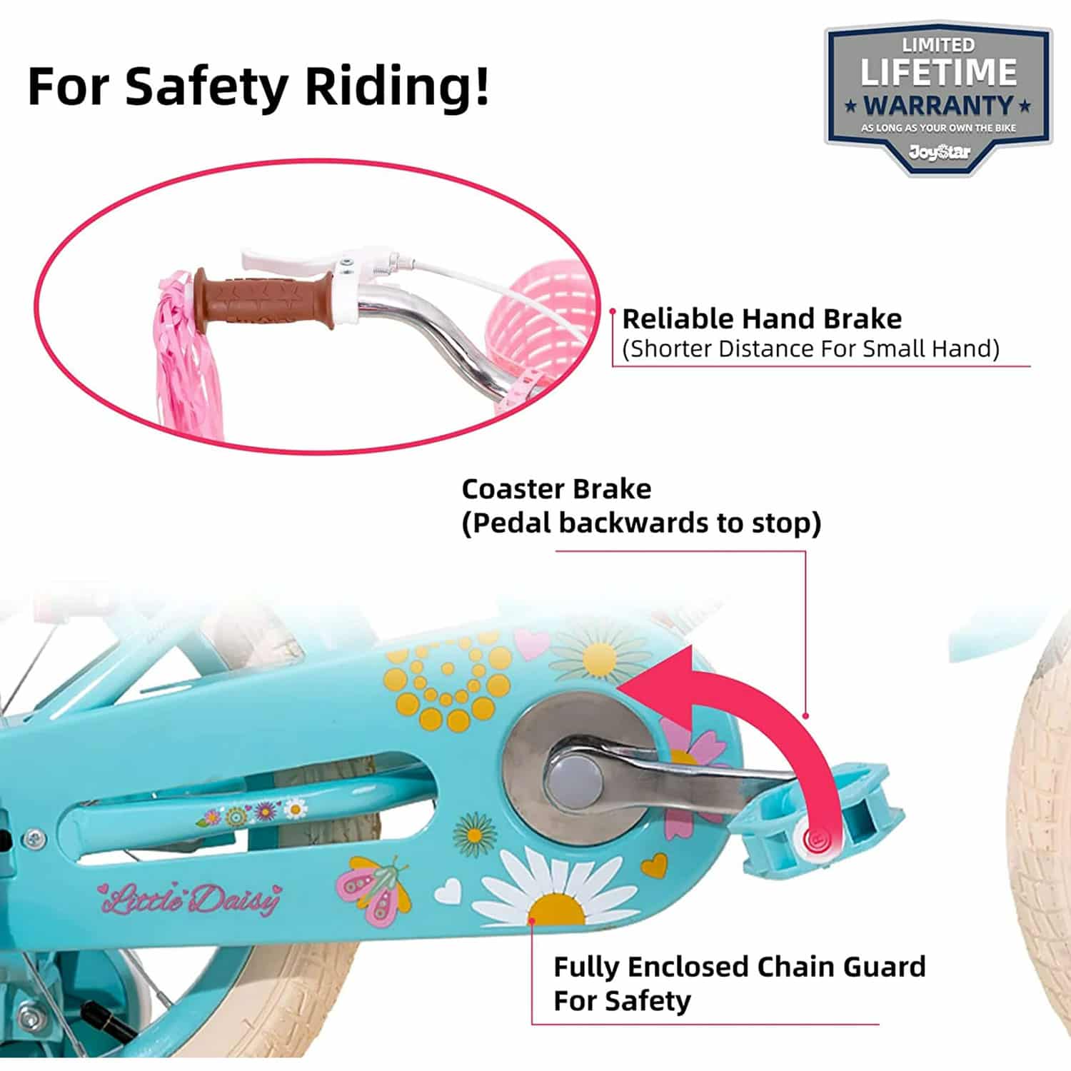 JOYSTAR Little Daisy 14 Inch Kids Bike for 3 4 5 Years Girls with Handbrake Children Princess Bicycle with Training Wheels Basket Streamer Toddler Cycle Bikes Blue
